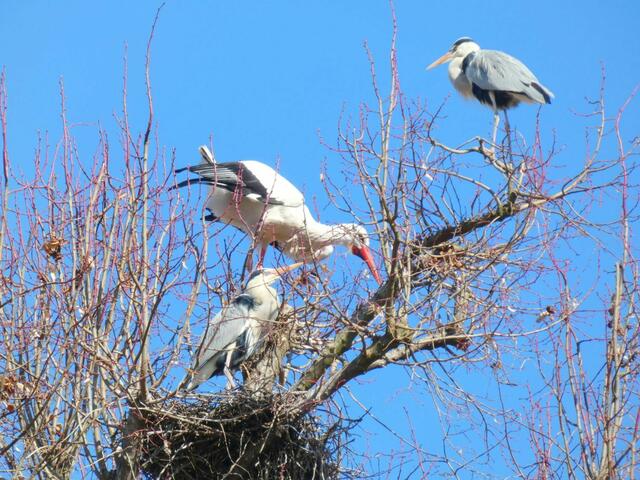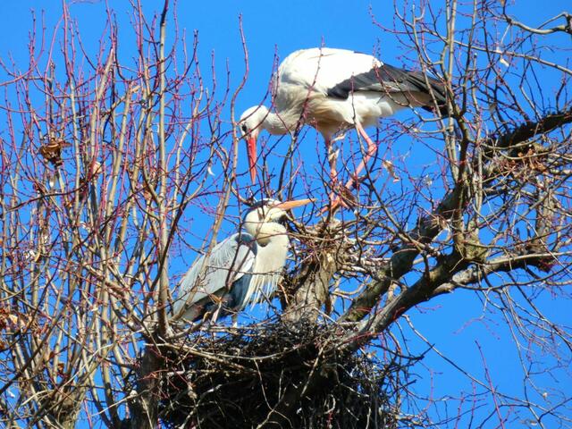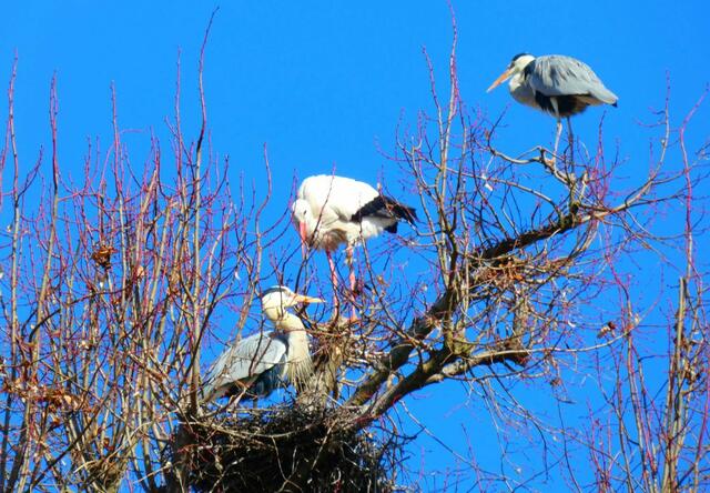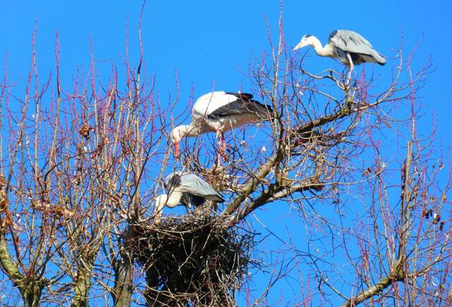 Ein Graureiher hat es für gut befunden, sich häuslich niedergelassen – da gibt es kein Wenn und auch kein Aber.
