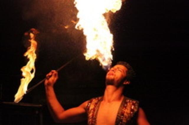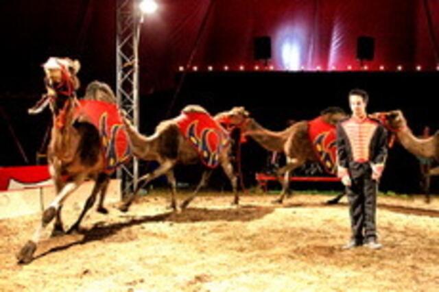 Rassige Pferde, Dromedare und Wüstenschiffe und Feuerspiele bringen orientalisches Flair in das Circuszelt.
