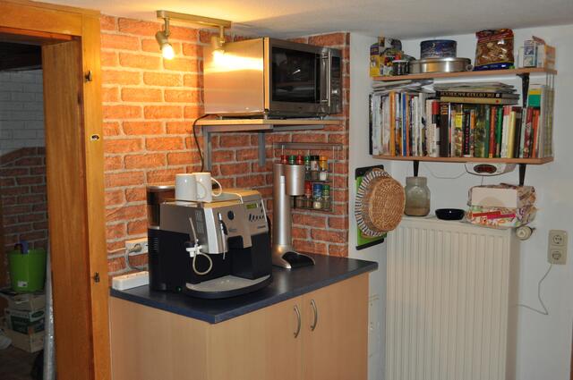 Also fasste ich den Entschluss und legte mir jetzt eine Saeco'Royal' zu. Einen Kaffeevollautomaten der keine Wünsche offen lässt. Nun mußte für dieses Megariesenteil die Küche komplett umgemodelt werden.Das hier hin,das dort hin,anderes wiederum wo ganz anders hin. Und?? Ja,eine neue Wandgestaltung.