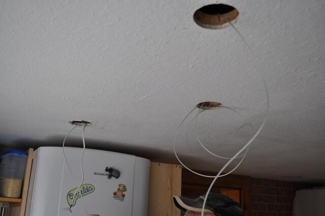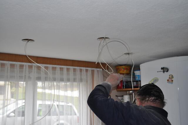 Dann regten mich noch die alten Lampen auf,die immer störender Weise von der Decke baumelten. Nun,wir haben eine niedrige Deckenhöhe und somit fand ich die Idee,Spots einzubauen für die fantastischste,die ich in der letzten Zeit hatte.