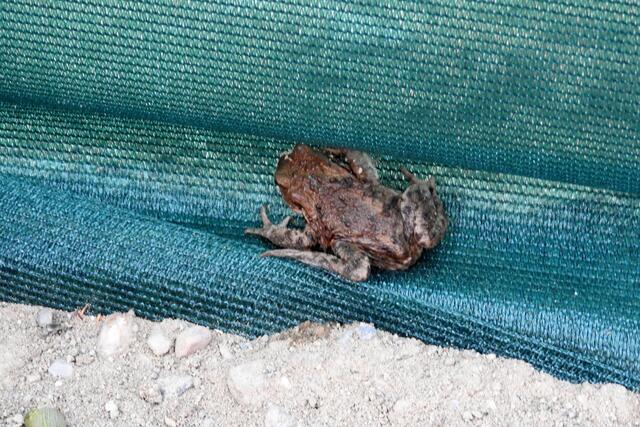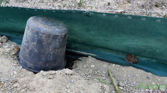 Und auch falsch aufgestellt waren, die Kröten saßen unterm Eimer oder der Eimer war falsch rum. Ein Teil vom Krötenzaun war nieder getreten.