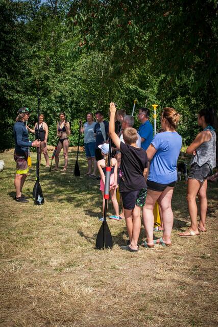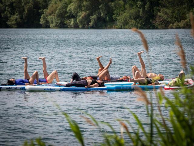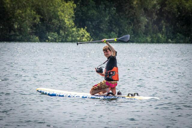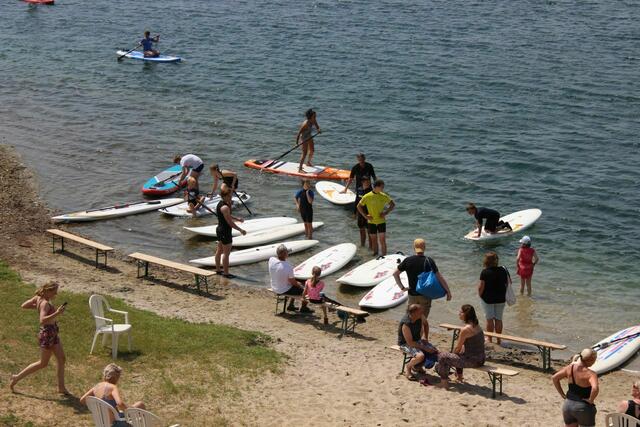 Auch das SUP-Boarden, also „stand up paddeln“, auf dem Surfbrett stehend paddeln, kann probiert werden.