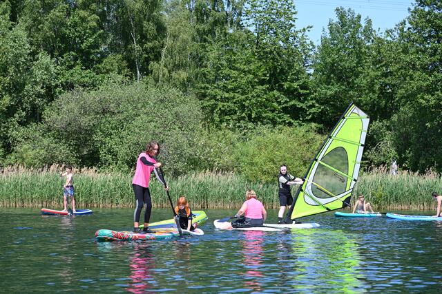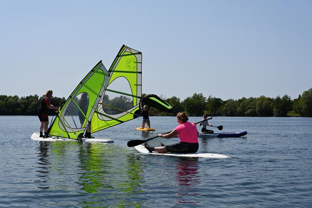 Windsurfen, Windfoilen, Wingfoilen und SUP-Boarden, das sind die Brettsportarten, die man auf dem Handorfer Surfteich ganzjährig ausüben kann!