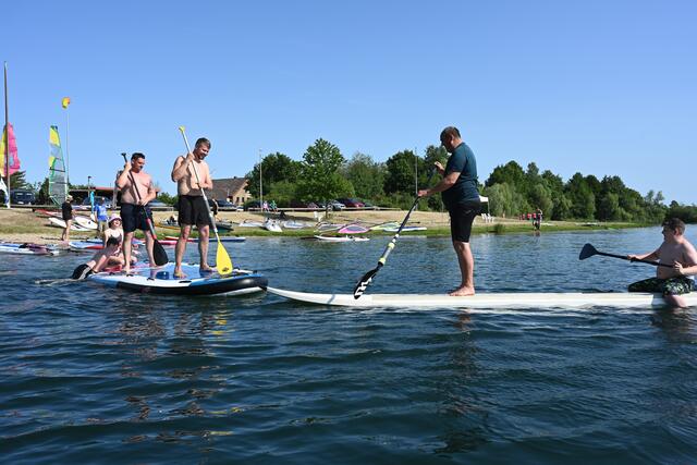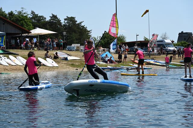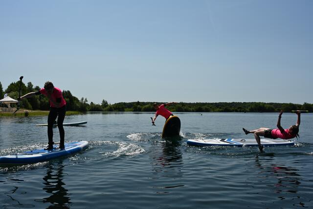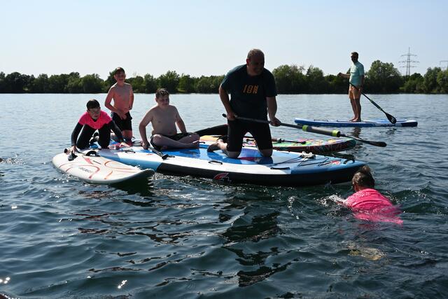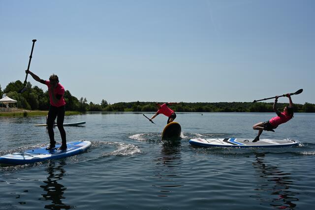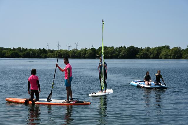 Auch das SUP-Boarden, also „stand up paddeln“, auf dem Surfbrett stehend paddeln, kann probiert werden.