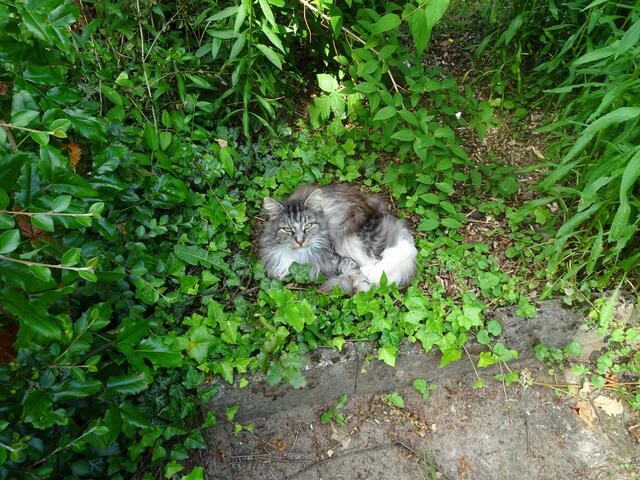 hatte sich eine fremde Katze bei mir im Garten, unter einem Busch versteckt.