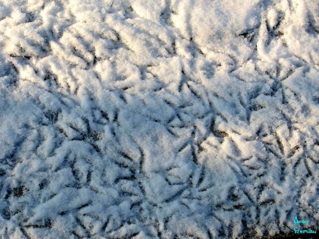 Spuren im Schnee , erinnern auch an Not einiger Tiere.