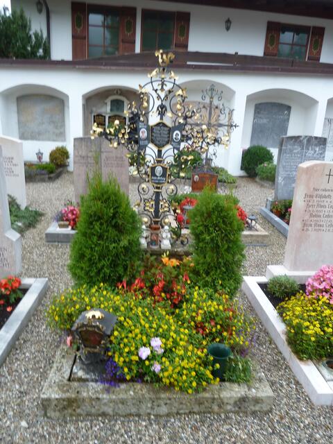 An einem Tag machten wir Frauen einen Spaziergang,so kamen wir auch am Kuhstall vorbei.Natürlich mußten wir einkehren;denn diese Gaststätte erinnerte an Maria Hellwig,die wir noch aus vielen Fernsehveranstaltungen kannten.Maria Hellwig hat viele goldene Schallplatten und CD´s verkauft,sie trat immer im Dirndl auf, so war sie eine volkstümliche Sängerin,später sang sie noch mit ihrer Tochter Margot zusammen.Maria Hellwig wurde am 22.2.20 in Reit im Winkel geboren , aber am 16.11.10 in Ruhpolding gestorben.Ihr Grab,welches wir auch besuchten,ist aber in Reit im Winkel.Hier fand sie ihre letzte Ruhe.