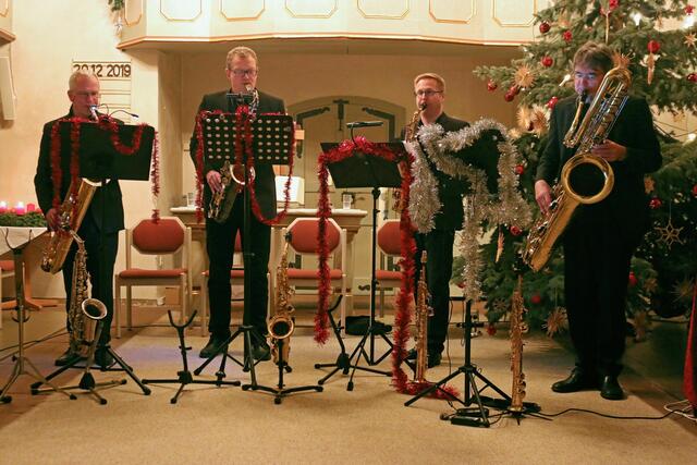 Beim Thema Weihnachtsmusik denkt man zunächst an Posaunenchor, Flötenspiel, Orgel oder Glockenspiel. Man kann aber auch Weihnachtsmusik auf Saxophonen spielen, wie die Saxophonbesitzer kurz vor Weihnachten demonstrierten. Am 20. Dezember spielten sie in der evangelischen Kirche von Nieder-Rosbach. Diese war schön weihnachtlich geschmückt, aber leider nur von einem sehr gelben Licht beleuchtet.
