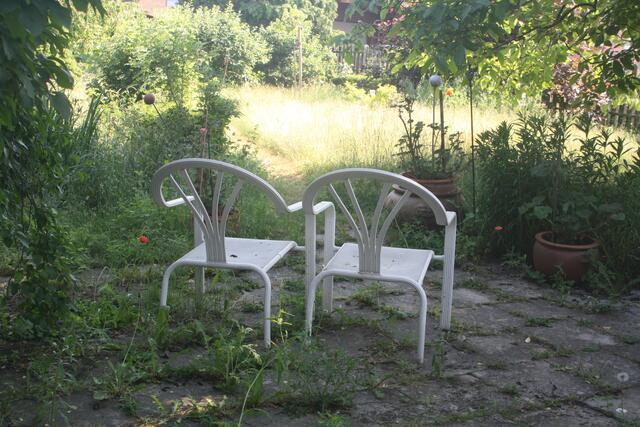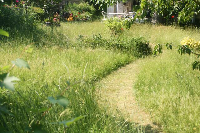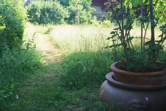 Der Garten verwildert, der Vorgarten noch mehr. Sogar der Fußweg wird missbilligend betrachtet, nur weil gelber und roter Mohn am Zaun üppig blüht.