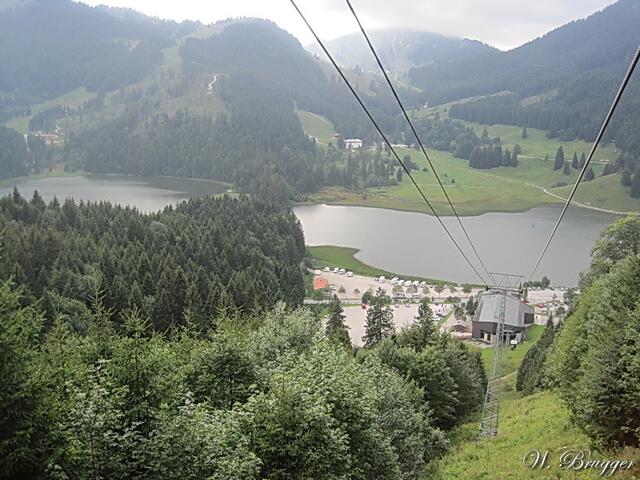 Doch als wir am Spitzingsee mit der Taubensteinbahn auf den gleichnamigen Berg wollten, drückten schon massive Wolken über den Hang. Egal, auffi muaß i, i muaß, i muaß, wie schon ein bekanntes Volkslied andeutet.
