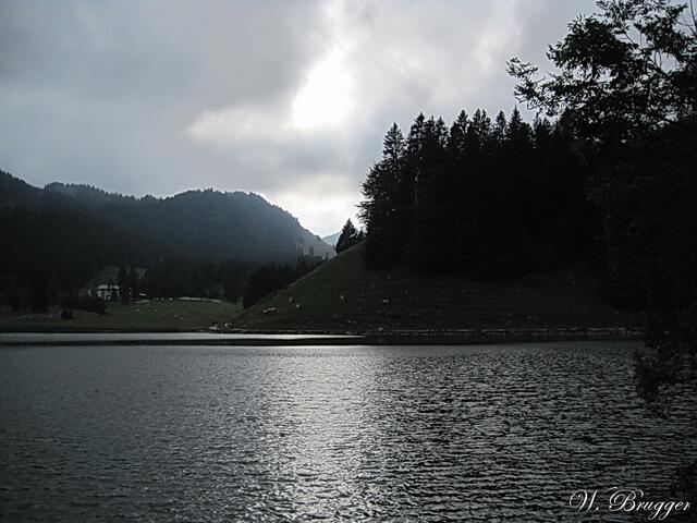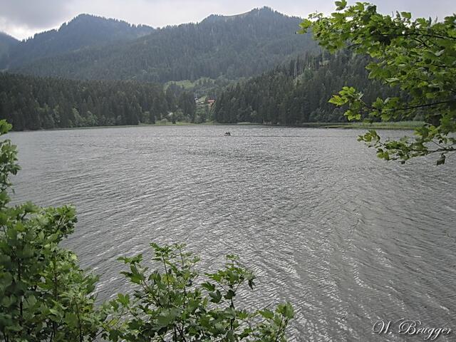 Wieder unten angekommen machen wir einen Rentnerspaziergang um den Spitzingsee, der bei dem schlechten Wetter dankenswerterweise wenig Betriebsamkeit zeigt. Im Winter muss hier wirklich viel los sein: Bahnen und Lifte ohne Ende, da lacht das Herz des Wintersportlers!