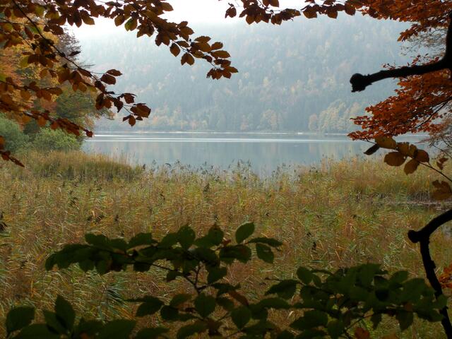 Der Alpsee bei Schwangau in der Nähe von Füssen liegt in unmittelbarer Nähe zu den Königsschlössern Hohenschwangau und Neuschwanstein. Auch bei Nebel hat der See seinen Reiz. Der 1,5-stündige Rundweg um den See ist absolut empfehlenswert. Einfach eine tolle Landschaft, ganz im Süden Bayerns.
