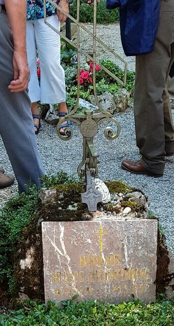 Geführt wurde die Gruppe von dem gebürtigen Seeoner Dr. Helmut Wittmann, der mit vielen kleinen Anekdoten die er zu berichten wusste, keine Müdigkeit aufkommen ließ. Interessant der kleine Friedhof mit den russisch-orthodoxen Grabkreuzen. Dieser diente den vormaligen Eigentümern von Kloster Seeon, dem russischem Adelsgeschlecht von Leuchtenberg, als Begräbnisstätte. Bekannt ist auch, dass hier eine geheimnisvolle Frau begraben ist. Diese behauptete, die Zarentochter Anastasia zu sein, die überlebende Tochter des letzten Zaren Nikolaus II. Sie ging eine Zeit nach Amerika und heiratete dort. Sie nahm nun den Nachnamen ihres Mannes „Manahan“ an.