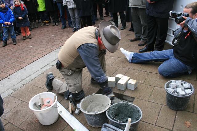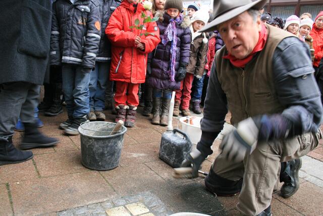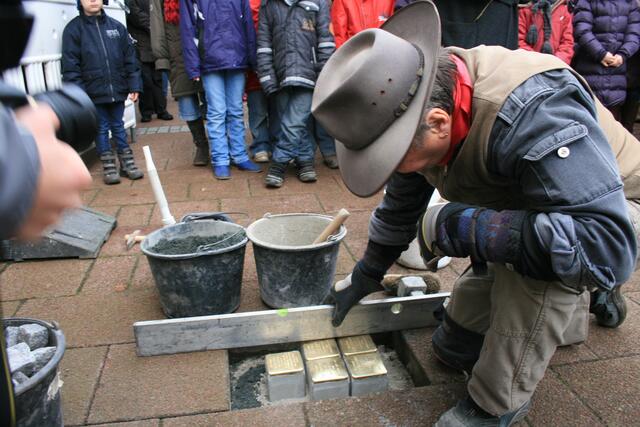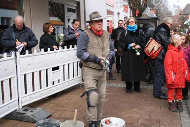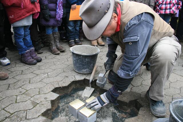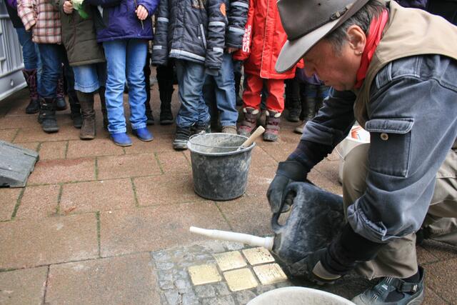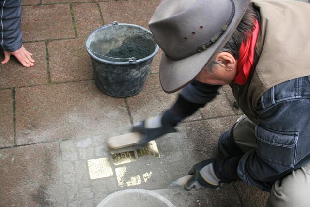 Der Künstler und Initiator der Stolpersteine Gunter Demning hat für neun Menschen aus Sehnde, die Opfer der nationalsozialistischen Gewaltherrschaft waren, Steine verlegt.
