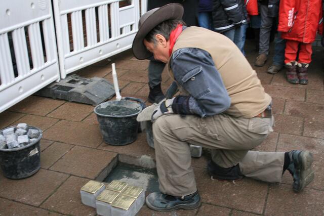 Die Projektgruppe " Stolpersteine" hat alle Interessierten zur ersten Stolpersteinverlegung eingeladen. Zahlreiche Sehnderinnen und Sehnder sind der Einladung gefolgt.