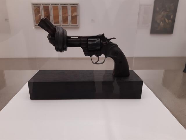Non Violence, ohne Jahresangabe (Gewaltlosigkeit). Carl Fredrik Reuterswärd.- Sprengel-Museum Hannover. | Foto: R.S. auf 🚲-Tour. - Fotografiert auf der 1. K³-Radtour 2025