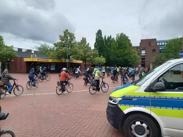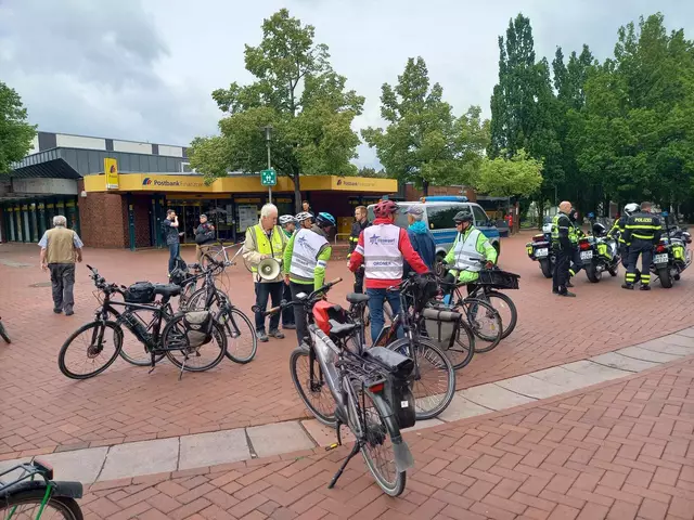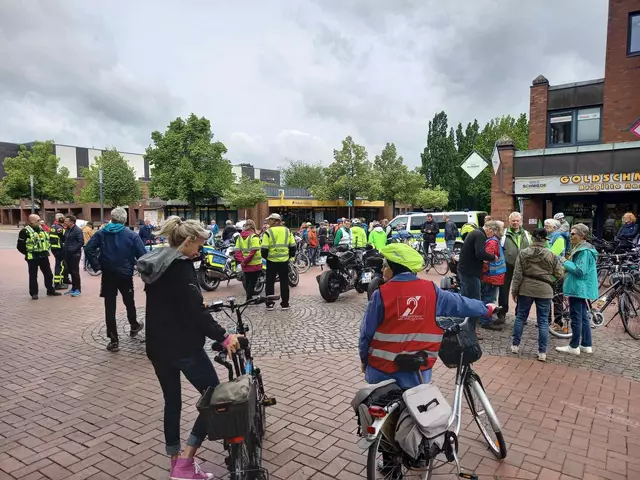 174 Radfahrende aus Langenhagen und aus der Wedemark starteten am Rathaus Langenhagen, und 27 kamen in Vinnhorst dazu. Hier stoppt dieser Tross an der Mecklenheidestraße/Continental, bereit zum Einfädeln in die Radfahrergruppe aus Garbsen, Neustadt, Wunstorf und Seelze. Fast 7.000 insgesamt Langenhagen dabei: 174 starteten am Rathaus unter Polizeischutz zum Stadtradeln-Zweirad-Fest am Maschsee Unterwegs kamen Radelnde aus Vinnhorst, Garbsen, Seelze, Herrenhausen, Hanomag & Steuerndieb dazu...