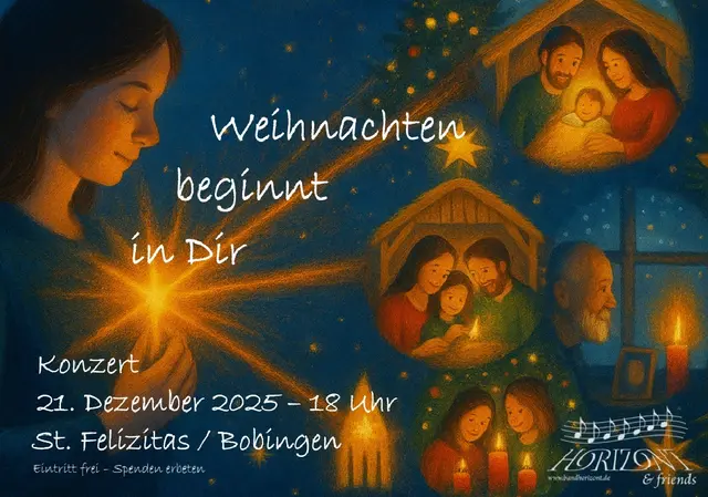 🎄 21. Dezember 2025   🎶 10:30 Uhr – Familiengottesdienst zum 4. Advent „Türen öffnen sich …“   Türen begegnen uns überall – In diesem Jahr wollen wir gemeinsam anklopfen, öffnen und eintreten.   Groß und Klein machen sich in diesen besonderen Adventsgottesdiensten auf den Weg zum Fest. 🕯️21. Dezember 2025   🎶 18:00 Uhr – Weihnachtskonzert „Weihnachten beginnt in Dir“   Inmitten der Vorweihnachtszeit laden wir herzlich dazu ein, innezuhalten und dem nachzuspüren, was Weihnachten für...