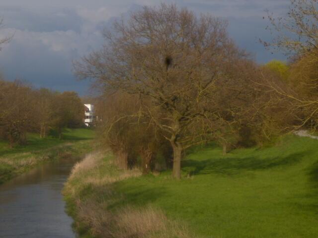Beim heutigen Muttertagsspaziergang durch Burgdorf kam zeitweise die Sonne heraus und glänzte im Wasser der Aue bzw. des Gümmekanals am "Alten Brückendamm". Es ist die Stelle, wo beide wieder zusammenfliessen. Bereits als Kind hat mich diese Stelle fasziniert... Das regte mich zu einigen spontanen Fotos dieser schönen Landschaft an.