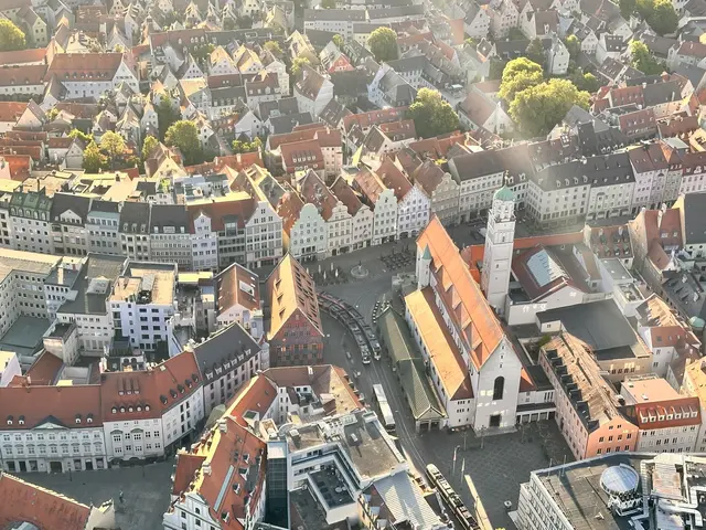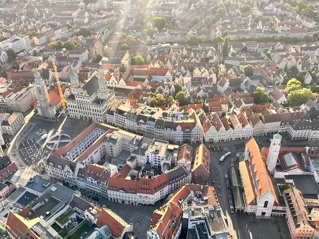 Historische Altstadt, Alpenblick und Lechlandschaft aus dem Heißluftballon