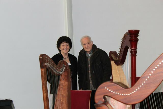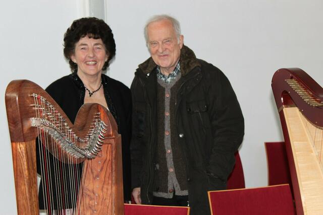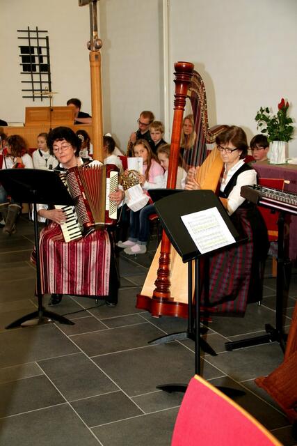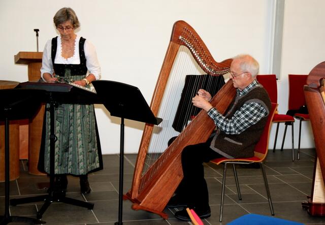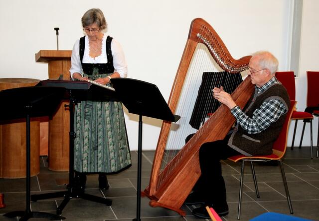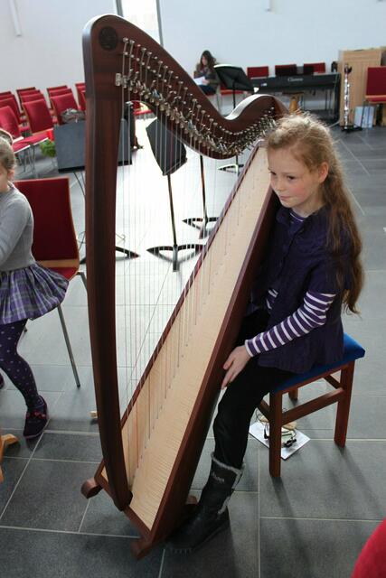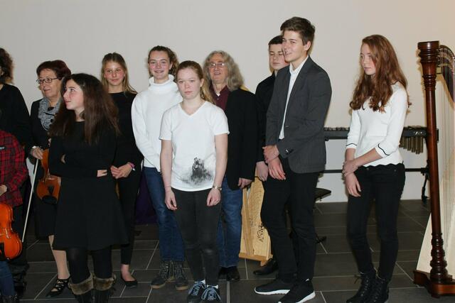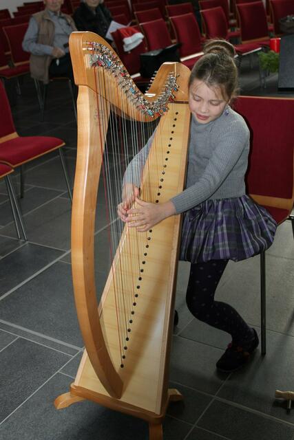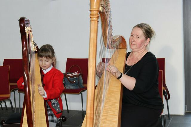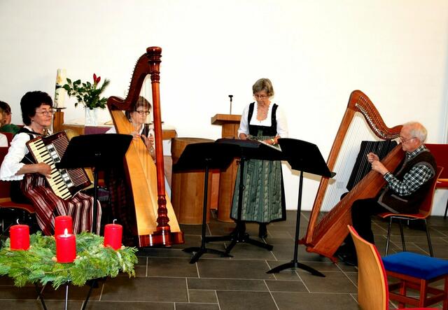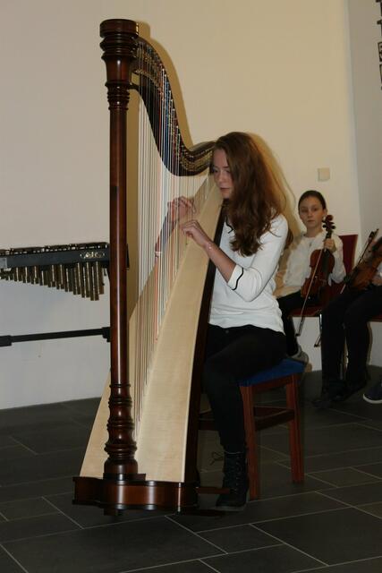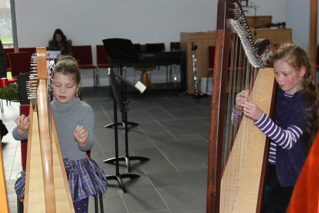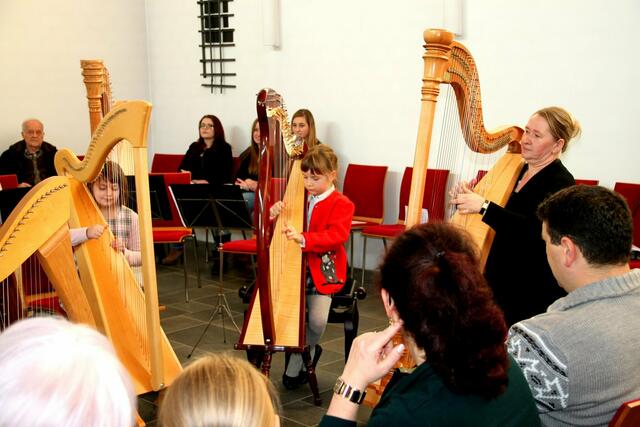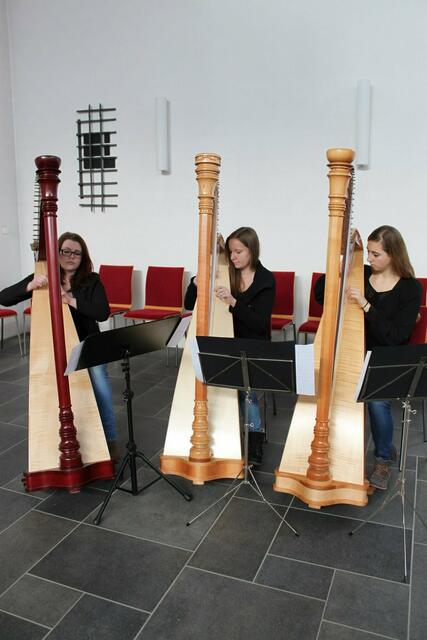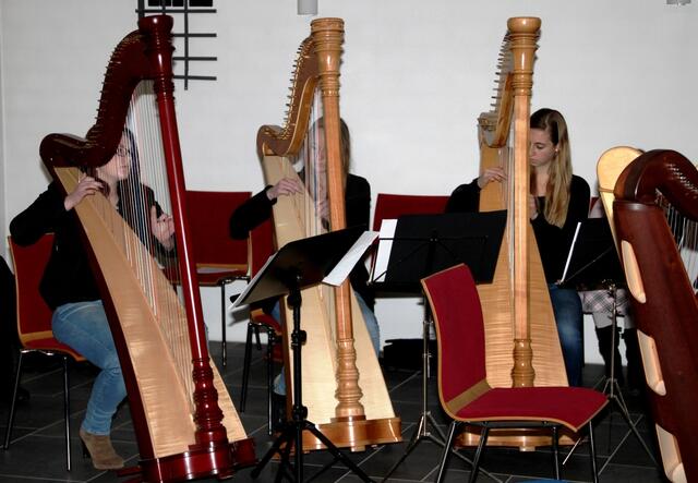 Das Harfentrio der Musikschule Wertingen mit von links: Anna-Sophia Rapp, Jule Panitz, Anna Mundi verzauberten das Publikum mit festlicher Harfenmusik.