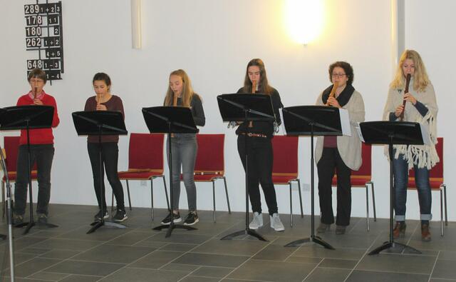 Das Saxofonquartett mit v. l. Luis Haupt, Chiara Bunk, Katja Fechtner, Martin Stempfle und Musikdirektor Manfred-Andreas Lipp spielten beim Gottesdienst Werke von Bach und Harold L. Walters.