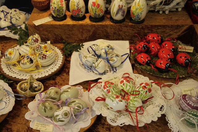 Wunderschöne Kunstwerke rund um das Thema "Ostern" gibt es an diesem Wochenende in Bad Arolsen beim Ostermarkt zu bewundern - und natürlich auch zu kaufen. Immer wieder bin ich bei solchen Märkten von der Vielfalt und den unterschiedlichen Techniken begeistert. Soviel Kreativität würde bei mir allenfalls im Geiste erwachen. Einige Standbetreiber möchten nicht, dass ihre Ausstellungsstücke fotografiert werden. Andere sind sehr aufgeschlossen und so kommt man hier und da sehr schön ins Gespräch....