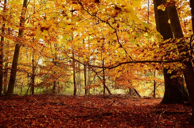 . Gutes Wetter - Sonnenschein, blauer Himmel und leuchtende Farben in der Natur - es verführt zu einer Fototour. Ich starte zu einem kleinen Rundgang quer durch den schönen herbstlich gefärbten Laubwald am Kniebrecher auf dem Hagen in Mengeringhausen. Bis vor einigen Jahren war hier der Truppenübungsplatz - nun gibt es keine Kaserne mehr - und ein großer Teil des Geländes davon ist frei zugänglich. Manche Stellen im Wald muten recht urwaldmäßig an, hier wurden keine Bäume abgeholzt und...