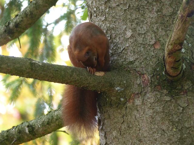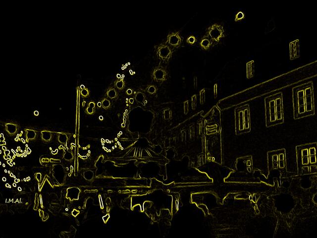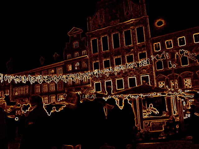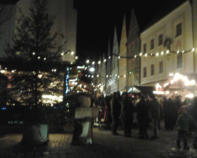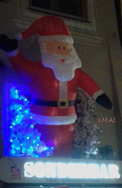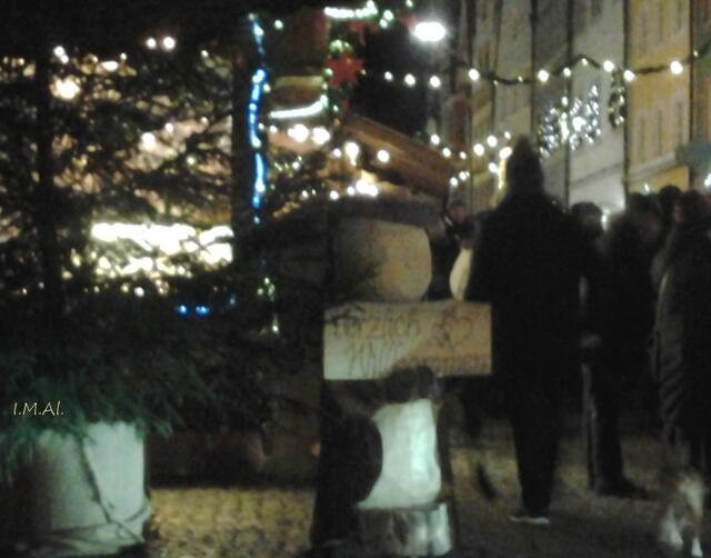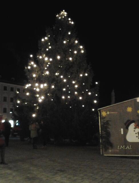 Weihnachtsschmuck in den Bäumen. In den Ästen der Bäume sind “Laternen” angebracht worden. Sieht schön aus, besonders, wenn sie am Abend in der Dunkelheit leuchten.
