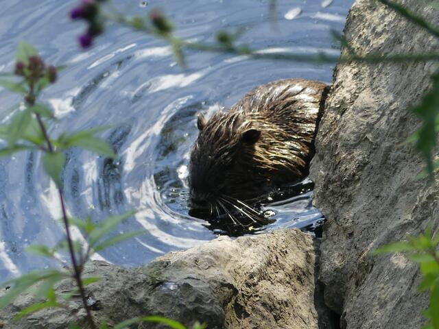 Nachwuchs bei Nutrias Von weitem sehe ich schon, dass Menschen die Lenne knippsen. Hier muss es wohl sein. Und ich sehe sie. Erst eins, dann zwei, dann sieben. Erwartungsvoll schauen sie nach oben, vielleicht sind sie es gewöhnt, gefüttert zu werden?! Weiter oben an der Lenne steht Werk 2 von Bilstein Hohenlimburg. Mit dem Bus zurück. Noch kurz in den Lennepark, etwas Sonne schnappen. Die Boulespieler grüßen freundlich und lassen die silbernen Kugeln fliegen. Eine schöne Freizeitbeschäftigung.