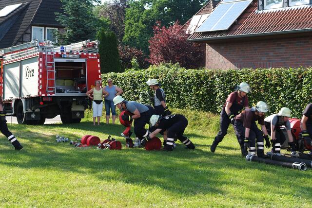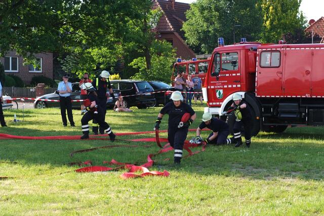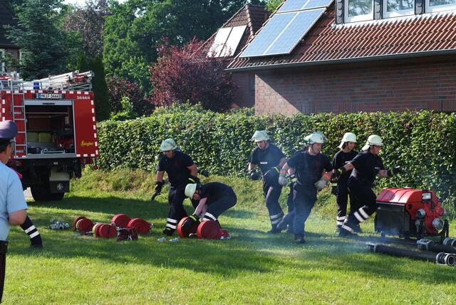Bispingen-Hörpel, 04.06.2016 "Wasser marsch!" war das Motto des diesjährigen Gemeindewettbewerbs der Freiwilligen Feuerwehren Hörpel, Steinbeck, Hützel, Bispingen, Behringen und Volkwardingen. Diese alljährlich stattfindende Feuerwehrübung der genannten Wehren fand in Hörpel statt. Das Wetter spielte sehr sonnig und warm mit, sodaß dies eine rundum gelungene Leistungsschau der beteiligten Wehren war. Es ging darum, eine Saugleitung von der Wasserquelle bis zum eigentlichen Löschpunkt...