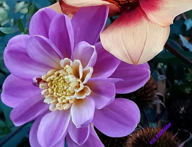 Pompon - Dahlien gibt es in mehreren Farben, sie blühen vom Juli an bis in den Oktober hinein. Fotografiert sind diese hinter der Kurverwaltung von Bad Füssing.