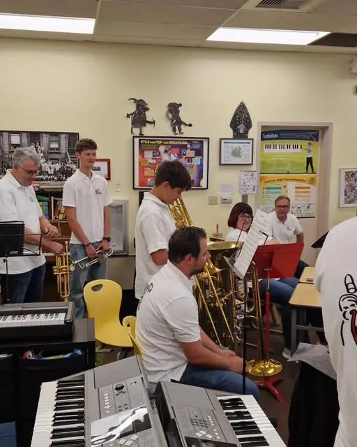 Am 20. Mai 2023 war es endlich soweit: Die Gersthofer Blasharmoniker konnten die Musiker der Musique Municipale de Meyrin (CH) in Empfang nehmen, die sie 2018 bei einem Besuch in der Genfer Umgebung kennengelernt hatten. Nun lagen zwar ein paar Jahre mehr als geplant zwischen dem Wiedersehen, aber das tat der Freude keinen Abbruch. Nach der gemeinsamen Probe am Donnerstagabend unterhielten sich die beiden Orchester angeregt bei belegten Riesenbrezen und Fingerfood, am Freitag erkundete die MMM...