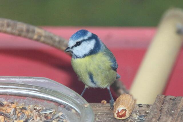 Hat die kleine Blaumeise den Schnabel zu voll genommen?
