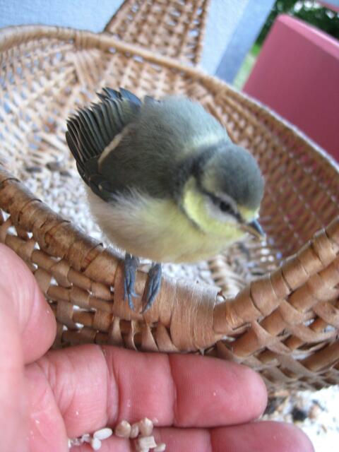 Spät Herbst besuchten mich  vier Vögel an mein Balkon. Ich dachte an Kohlmeisen da sie alle graue Hauben hatten. Einer der Vogel verhielt sich sonderbar. Als ich ein Schnappschuss einstellte, schrieb Reinhold Peisker das es eine Blaumeise sei. https://www.myheimat.de/donauwoerth/natur/mein-kle... Also waren es eine Blaumeise und drei Kohlmeisen Jungvögel. Wehrend die drei Kohlmeisen immer weg flogen blieb die Blaumeise da und ließ sich durch mich nicht stören wenn ich die Balkontür aufmachte....