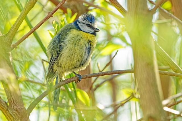 Wie es scheint, sind manche Blaumeisen durchaus modebewusst. Einem Exemplar hat die Standardfrisur nicht mehr gefallen. Also ist sie zum Meisenfriseur geflogen und hat sich einen trendigen, leicht punkigen Kopfputz verpassen lassen. Bin gespannt, was die Meisencommunity dazu sagt.