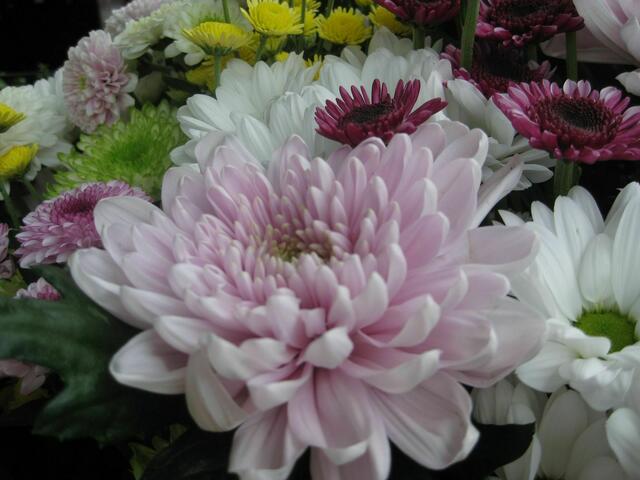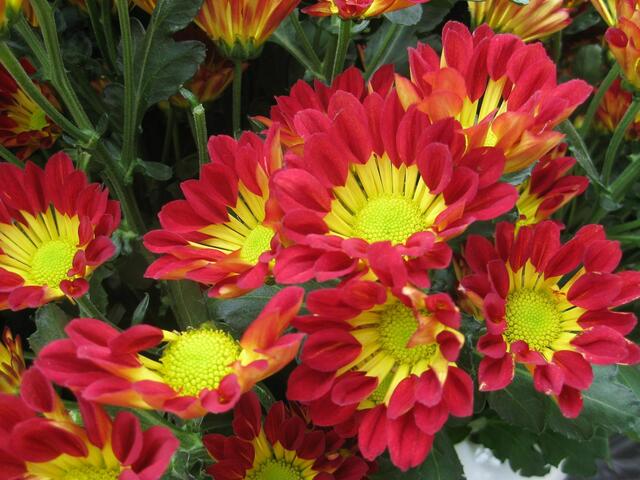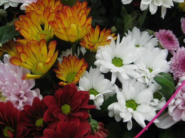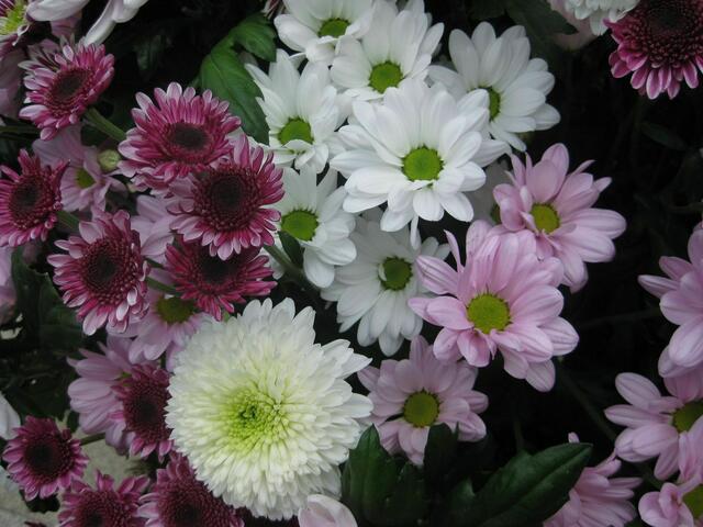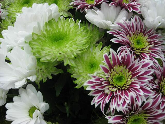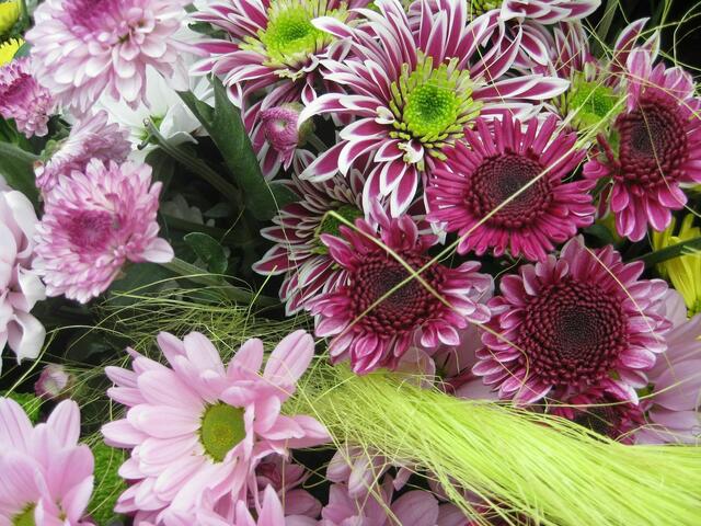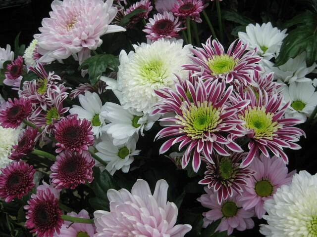 Chrysanthemen in vielen Variationen............... Die Chrysanthemen sind eine Pflanzengattung aus der Familie der Korbblütler, hauptsächlich in Ostasien verbreitet. Sie zählen zu den bedeutendsten Zierpflanzen. Nicht zu glauben, wie viele verschiedene Arten es gibt..... Eine hübsche Auswahl war einmal beim Dehner zu sehen.