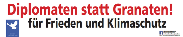 https://www.bremerfriedensforum.de/1490/aktuelles/Dezentraler-bundesweiter-Aktionstag-der-Friedensbewegung/ In Bremen erfolgt der Auftakt zum dezentralen Aktionstag der Friedensbewegung bereits am Donnerstag, 29. September, 17:00 bis 18:00 Uhr, auf dem Domshof, mit einer erweiterten Mahnwache. Es sprechen: Wilfried Preuß-Hardow, ehemaliger Friedensbeauftragter der Bremischen Evangelischen Kirche und Roman Fabian, Betriebsrat Klinikum Links der Weser....