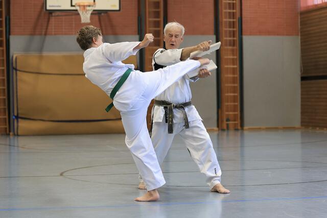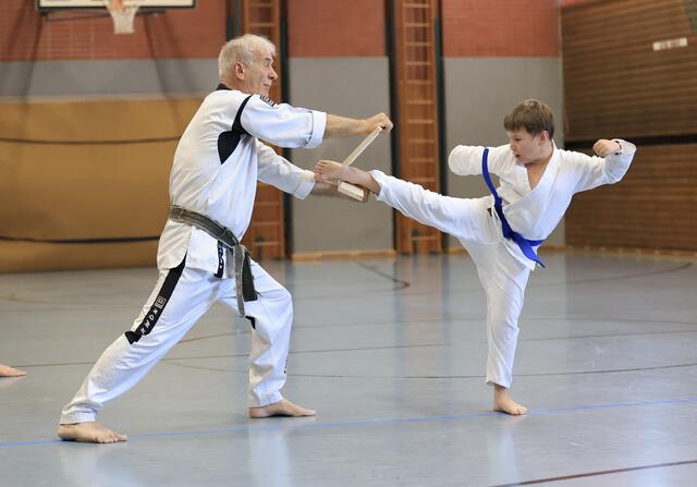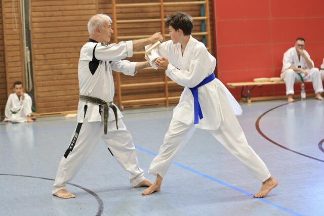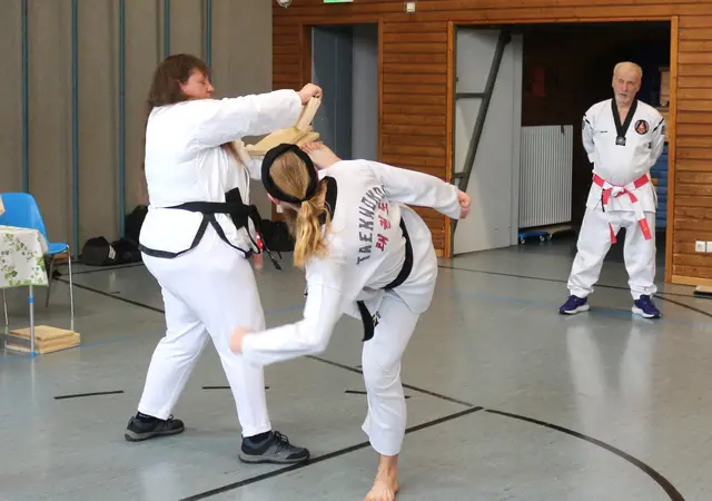 Systemgroßmeister Gerhard Maier besuchte am 23. Juni 2017 auf Einladung von Frank Stave (3. Dan, verantwortlich für den TWIN-Taekwondo-Standort Welden und Trainer der TWIN-Taekwondo-Gruppe Neusäß-Westheim) den TWIN-Taekwondo-Standort Welden. Noch vor Beginn des allgemeinen Lehrgangs konnten die Fortgeschrittenen und Meister einige kombinierte Hosinsul-Techniken (Grifftechniken zur Selbstverteidigung) unter Anleitung trainieren, eine besondere Spezialität von Gerhard Maier. Vierzig Teilnehmer...