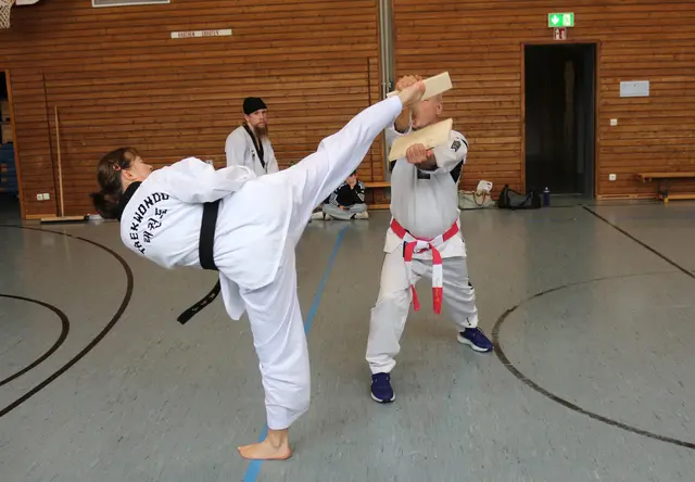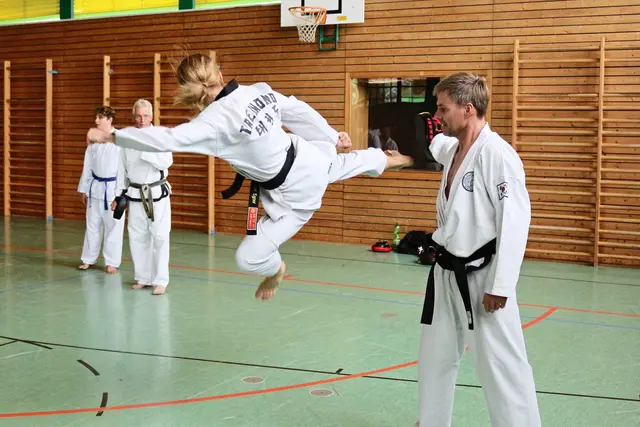 Taekwondo Lehrer Riza Günaydin und sein Trainerteam waren am 31.07.2014 in der Turnhalle Harburg anlässlich des Ferienprogramms. Hierzu waren 10 Kinder angemeldet, die in die koreanische Kampfkunst schnuppern wollten. Nach verschiedenen Aufwärmübungen wurde gleich mal das laute Schreien angesetzt. "HILFE! HÖR AUF! GEH WEG! LASS MICH IN RUHE! KIAP!" wurden immer wieder gerufen. Vor allem Kinder müssen lernen, dass sie bei Gefahr so laut es geht Schreien, Hampeln, Kratzen, Beisen und Zwicken...