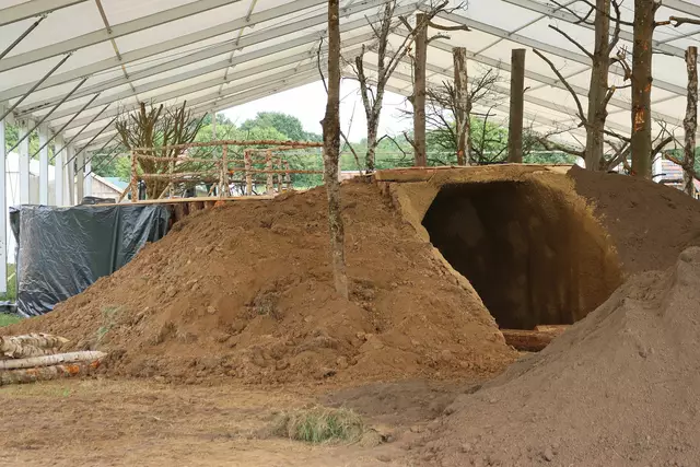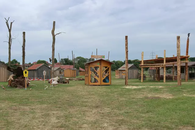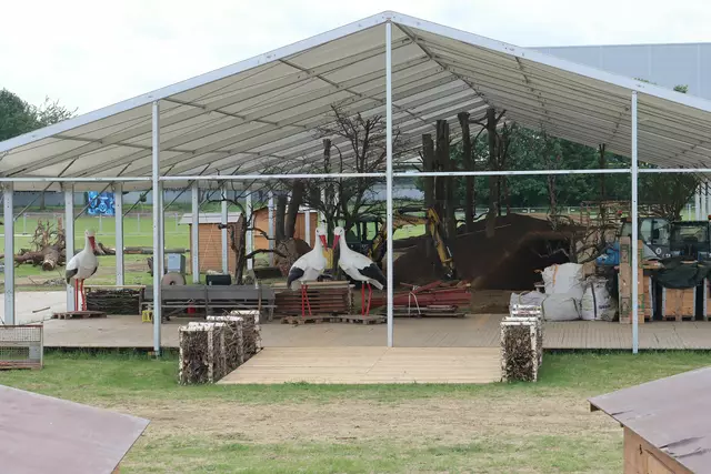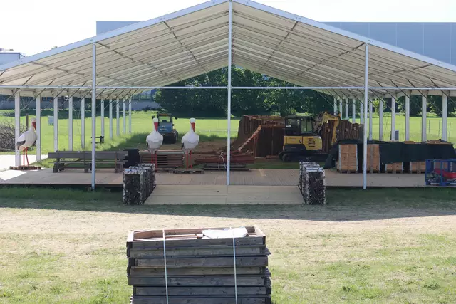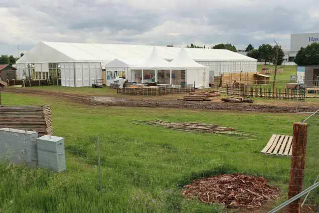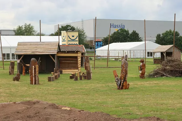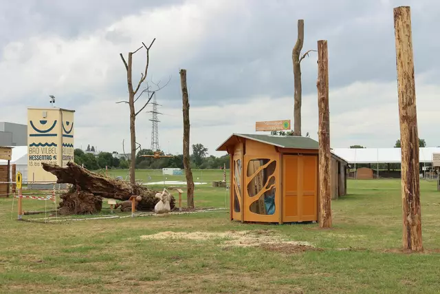 Am 19. Mai ergab sich die nächste Gelegenheit für einen Besuch der Hessentagsbaustellen in Bad Vilbel. Bei der Landesausstellung waren keine so großen Veränderungen erkennbar. Inzwischen war ein weiteres Zelt aufgebaut worden. Von diesem fehlten aber noch die Seitenwände. Bei "Natur auf der Spur" gab es große Fortschritte beim Bau des Dioramas. Ein Tunnel aus Holz war in der Zwischenzeit entstanden. Drei große Plastikstörche standen im Zelt. Dort werden sie aber nicht bleiben, da sie...