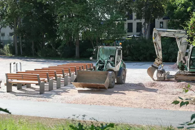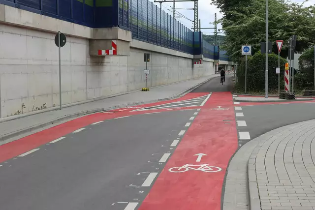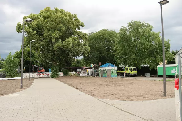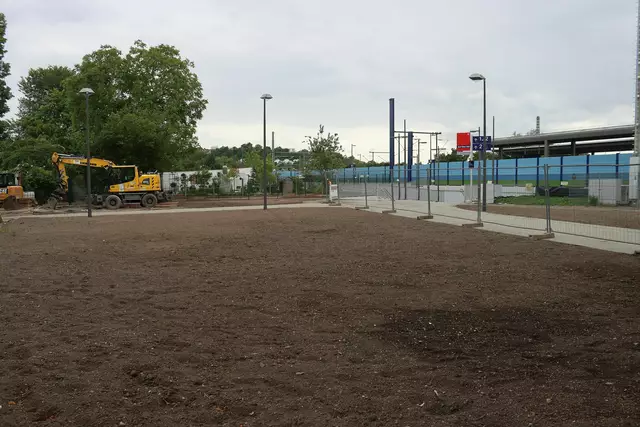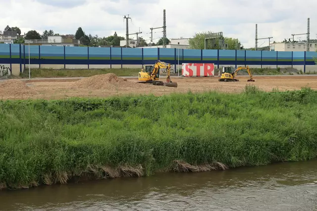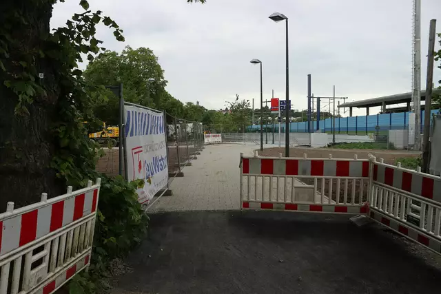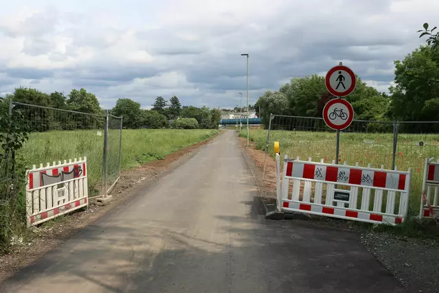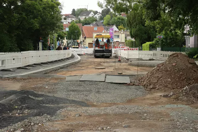 Straßenbaustelle an der Nidda - hier war früher die Behelfsbrücke zur Verbindung mit dem Südbahnhof.