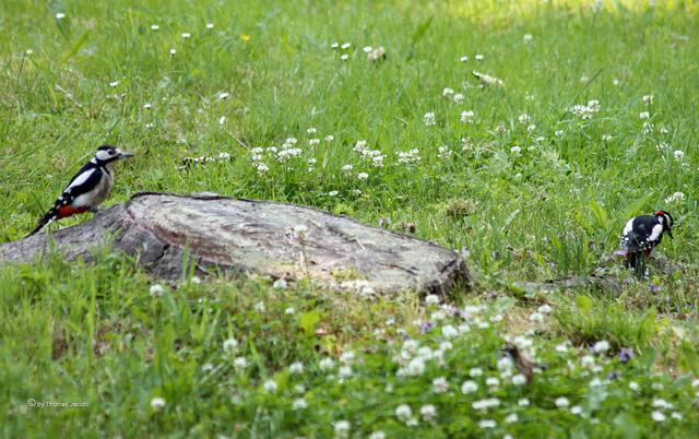 Obwohl mitunter durchaus sehr laut, muss man schon Glück haben, sie im Wald dann doch zu entdecken: die kleinen Buntspechte. Der Nachwuchs ist flügge und erobert vorerst nur die nähere Umgebung. Aber auch die kann schon mal eine Überraschung bereit halten. :-)