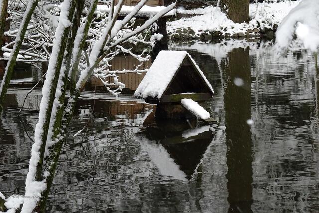 Spechtmeise, so wird auch der Kleiber genannt. Bei unserem Spaziergang heute entdeckten wir einen solchen, wie er erfolgreich trotz des kalten Wetters einen Wurm unter der Rinde hervor pulte. Wenig später konnten wir einen Buntspecht beobachten, der es auf die Spitze trieb. Leider war er zu weit weg, um ein richtig scharfes Bild von ihm zu bekommen. Auch eine Blaumeise ließ bei Schneefall blicken.