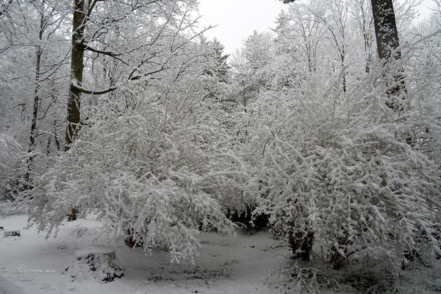 Bei dem heutigen Sauwetter (Nebel, Eisregen, Schneefall) hatte sich doch tatsächlich ein Buntspecht bemerkbar gemacht. Leider war er sehr weit oben im Baum, aber das Gehämmer auf dem gefrorenem Holz war nicht zu überhören.