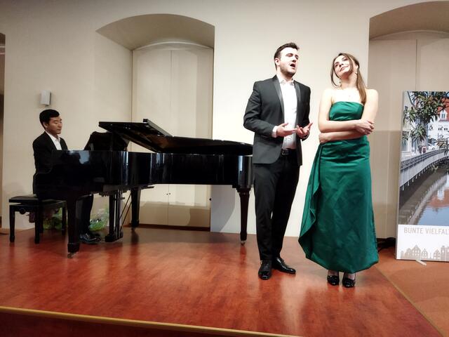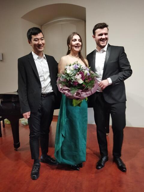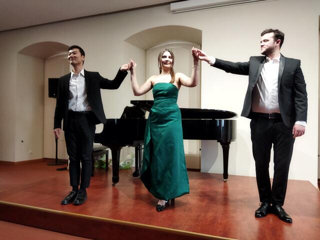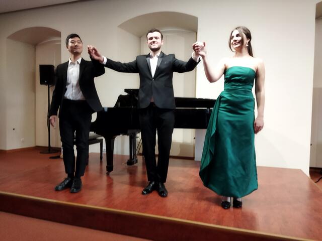 Die jungen KünstlerInnen Mirlinda Koci (mitte), Granit Musliu (rechts) und Tackyoung Chung (links), präsentierten einen musikalisch hochkarätigen Vormittag, geladen voller Emotionen der italienischen Oper, im Festsaal des Wertinger Schlosses.