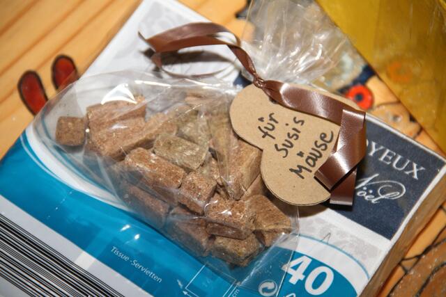 Dein sonnengelbes Päckchen ließ die Nebelschwarten schwinden. Die Katzen und Mäuse erfreuen sich jetzt an neuen Leckerlies, Wir werden dank des Süßigkeiten Vorrates gut durch die Weihnachtszeit kommen, Ganz dicke Umärmelies. Deine Zanderlis sagen DANKE und nun warten wir brav auf den 24. grins