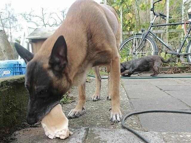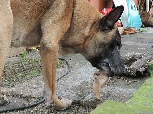 Da mußten Jaccy,Boxy und Barry richtig kauen....jeder von den Hunden bekam ein Stück Pansen,da waren die Kaumuskeln und Zähne gefragt. Das es denen geschmeckt hat,ist wohl kaum zu übersehen ;-) Die Vögel wurden mit gekochten Ei verwöhnt,was staunte da die Meise !