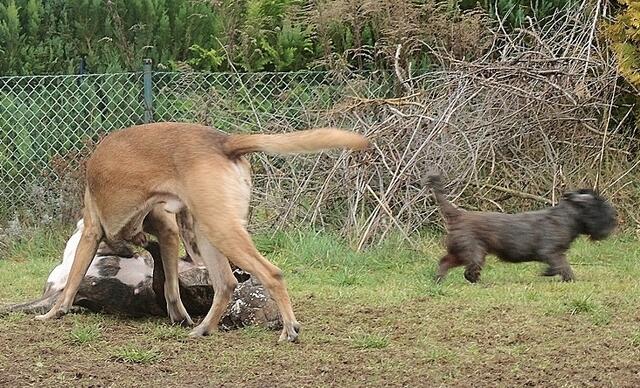 ...sagt sie den "Großen" deutlich ihre Meinung ! Mit dem Toben hat Hundeoma Jaccy es nicht mehr so,sie macht lieber ihr eigenes Ding.Oder sie würde es gerne machen,wenn es nicht grad Barry in den Kopp kommt sie zum mitspielen animieren zu wollen. Falsche Adresse ! Den alters-und größenbedingt steht Jaccy darauf gar nicht-und das machte sie deutlich klar,als gerade auch noch Boxy dazu kam und ebenfalls spielen wollte.... Wie die lütte Jaccy denen ihre Meinung klar machte,ist trotz der nicht ganz...