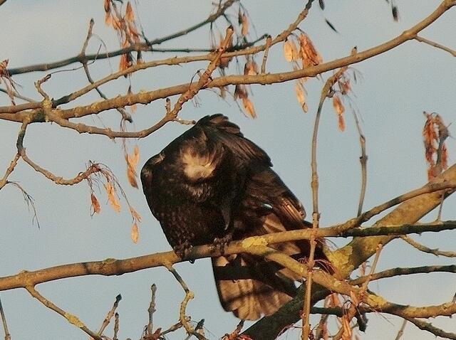 Alle Fotos "schoss" ich freihändig,also ohne Stativ,was mit der schwereren Cam für mich tatsächlich nicht einfach ist,weil das hochhalten meiner Arme mir nicht leicht fällt und nur einige Minuten klappt. Umso stolzer bin ich das es mir gelang,von den Elstern und Krähen in der fernen Weide Flugbilder zu machen ! Um zu verhindern das mir die Cam aus der Hand fällt hänge ich mir diese grundsätzlich um den Hals,knapp 500g wiegt meine "Kleine",mit der ich noch nicht alles ausprobiert habe was sie...